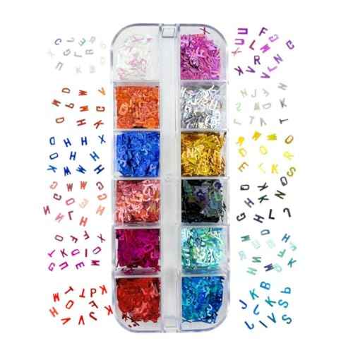 12 Colors Letter Nail Glitter Sequins 3D Holographic Alphabet Nail Flakes Designs, Letters Nail Art Sequins Supplies for Women Girls Acrylic Nails Manicure Charms Decorations DIY Shiny Letter Resin¡¦