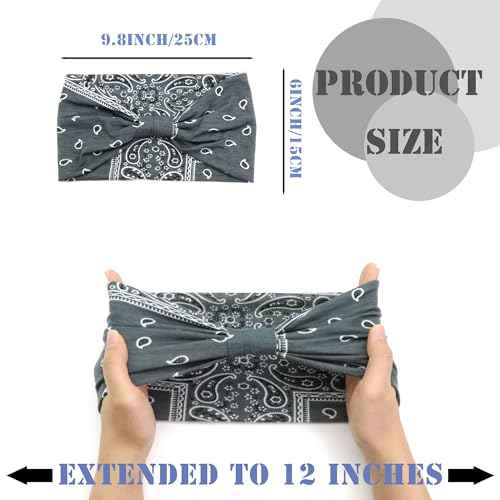 FULZTEY Boho Headbands for Women Vintage Paisley Wide Hairbands Large African Headwrap Elastic Non Slip Workout Sports Head Band Knotted Thick Turban Cotton Bandanas for Hair Accessories 4Pcs