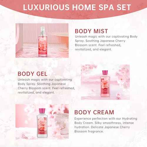 Bath and Body Gift Set for Women and Girls, Japanese Cherry Blossom Spa Set With Natural Extracts-Shower Gel, Body Lotion, Body Mist, Body Care Travel Set for Birthday Mother's Day Gifts