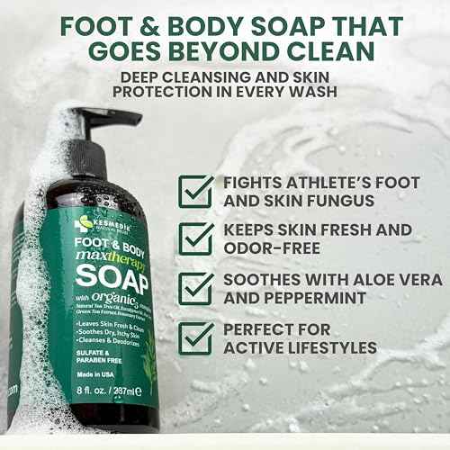 Pure Tea Tree Oil Foot & Body Soap Wash with Peppermint, Deep Cleansing & Soothing, Antibacterial Antifungal Support for Itchy Skin, Ringworm, Athlete¡¯s Foot, Scabies & Demodex, 8 fl Oz