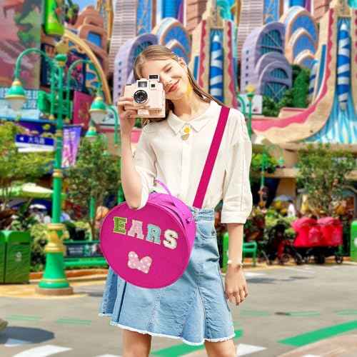 Heaband Holder Organizer, Large Round Tiara Tote Storage Box, Headband Ears Display Storage Box with Shoulder Straps (Rosy Red)