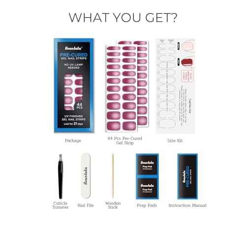 Pre Cured Gel Nail Strips - 44PCS Salon Quality Gel Nail Stickers - Long Lasting Polish Wraps for Women no UV Light Needed Easy Apply& Remove (Bold Pink)