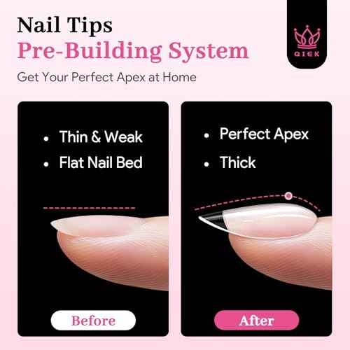 Medium Almond Pre-Building Nail Tips, 15 Sizes 240 PCS Pre-shaped Apex Clear Soft Press On Fake Nail Half Matte Gel Nail Extensions Strong Thick Acrylic Tip for DIY Beginners & Salon Manicure