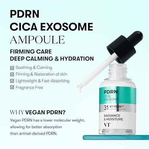 VT COSMETICS PDRN Cica Exosome Ampoule, Firming Serum with Peptide & Ceramide for Anti-Aging, Wrinkle Care, Plumping, Hydration & Radiant Glow, For All Skin Types, Korean Skincare (1.01 fl. oz.)