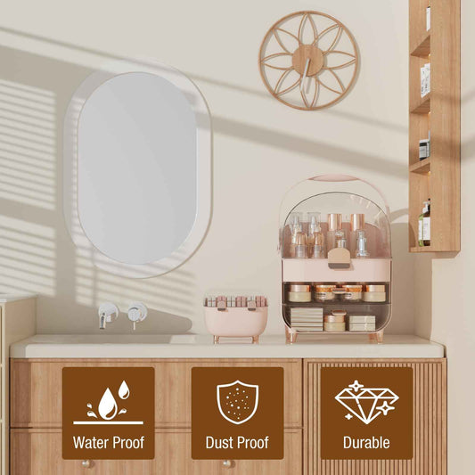 CLBDRESS Makeup Organizer Countertop, Skincare Organizers for Vanity, Storage Box with Lipstick, Large Cosmetic Display Cases for Bathroom, Teen Girl Gifts Make up Organizers for Dresser (Rose Pink)