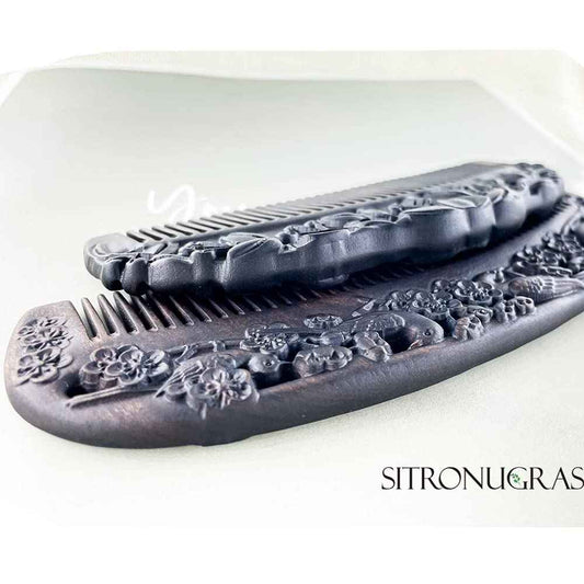 Sitronugras Black Sandalwood Natural Hair Comb, Ebony Carved Fine Tooth Wooden Comb- Anti-Static No Snag Handmade Hair Wood Comb for Women Men - with gift box