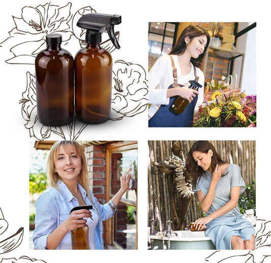 QINGYA 14 Pack amber glass bottle Set,Empty Boston Round Bottles with Adjustable Nozzle,Multi Size and Versatile(16oz,8oz,4oz,2oz,1oz) x 2, 10 ml Roller Bottle x 4 with Labels