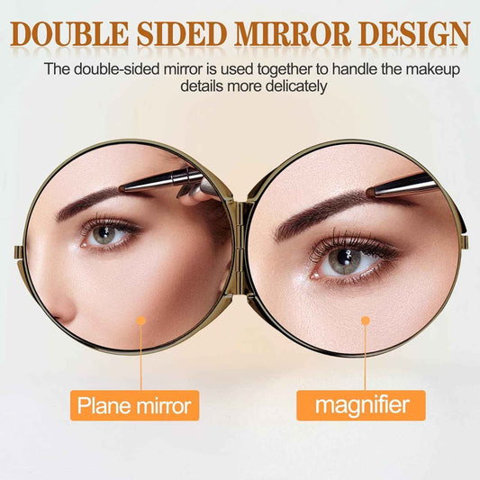 Retro metal compact travel mirror 1x/2x magnification compact portable foldable, used as a compact magnifying glass for wallets and pockets, distortion free folding portable compact mirror (bronze)