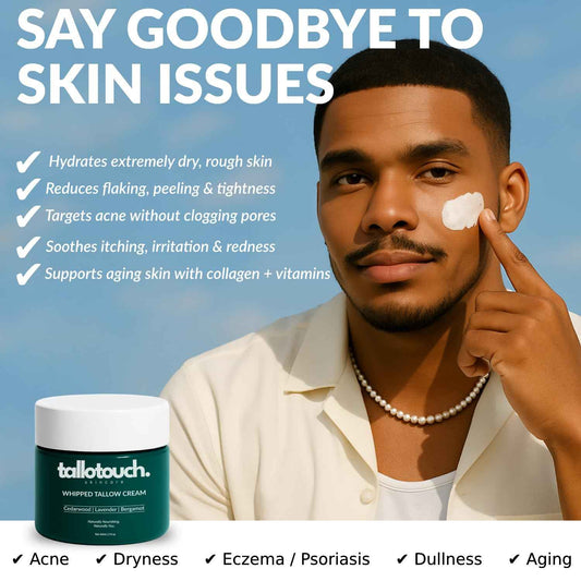 Whipped Tallow Cream for Face & Body - 100% Grass-Fed Beef Tallow, Collagen, Shea Butter & Beeswax Moisturizer, Deep Hydration & Skin Repair, Essential Oils, Fast Absorbing