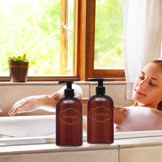 Bottiful Home-16 oz Shampoo and Conditioner Refillable Empty Plastic Pump Bottle Dispenser Set (Amber)