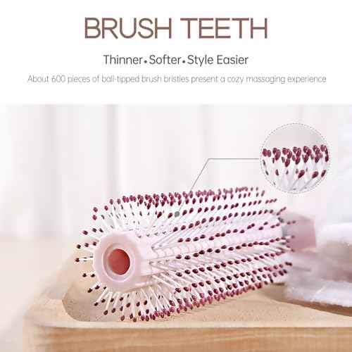 Curly Hair Brush for Women, Barrel Round Hairbrush for Quick Blow Dry Travel Size for On-the-go, Detangler Brush for Hurt-free Detangling on All Hair Vibes, Pink, 1 Pack