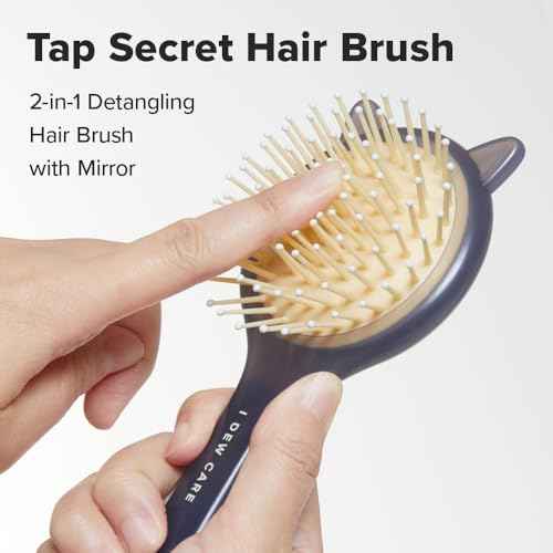 I DEW CARE Tap Secret Detangling Brush with Mirror | Cute and Ergonomic Design for All Hair Types - Gifts for Women, Girls