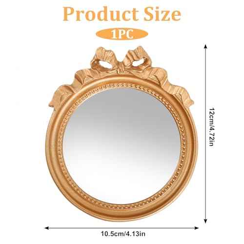 Small Wall Mirror 4.2'' Gold Vintage Makeup Desk Mirror Traditional Roundness Table Mirror Antique Mirror with Resin Frame Decorative Hanging Mirror for Bedroom Bathroom Tabletop Wall