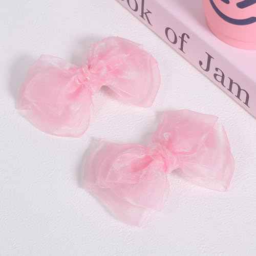 Pink Hair Bows Barrettes Mesh Bow Clips 4" Organza Double Tulle Bowknot Hairpins Handmade Birthday Dress outfit Decor Accessories Gift for Teens Toddler Girls Children Kids Women