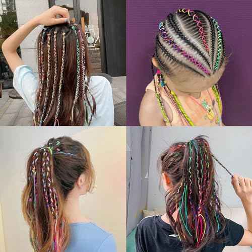 Generic 52Pcs Colorful Hair Wrap String For Braids Assorted Rainbow Fashionable Gradient Color Women Girls DIY Ponytail Braids Styling Accessories