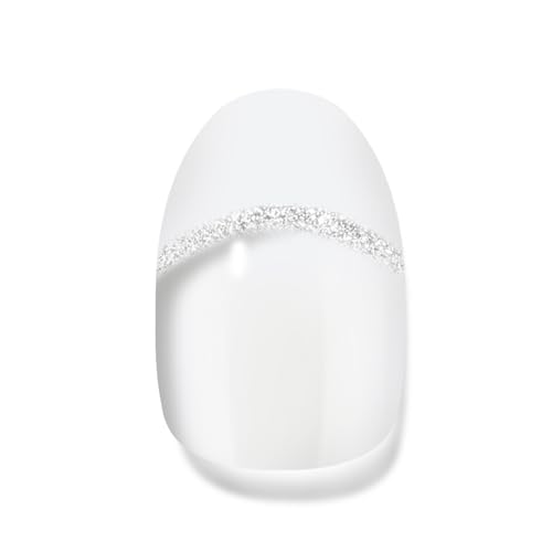 Semi Cured Gel Nail Strips - White French Tip, Clear Base with Silver Glitter Line, 20 Pcs DIY Gel Nail Wraps, Beginner-Friendly, Salon-Quality, UV Light Required