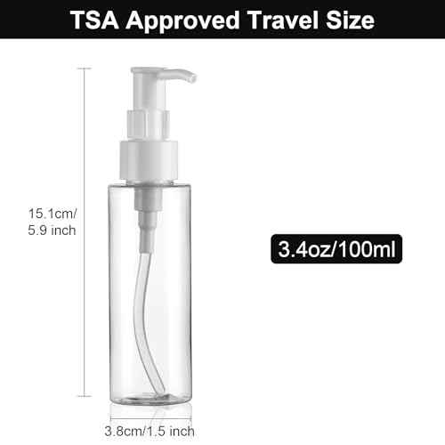 Cosywell Empty Plastic Pump Bottles Dispenser TSA Approved 3.4oz 4 Pack Portable Empty Refillable Container Clear Plastic Lotion Pump Dispenser Bottle for Facial Cleansing Oil Shampoo Shower Gel