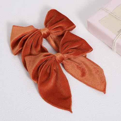 Burnt Orange Velvet Ribbon Fable Bow Hair Clips 2pc 5" Vintage Terracotta Velvet Ponytail Bow Alligator Barrettes for Teen Toddler Girl Women Fall Winter Dress outfits Decor Accessory