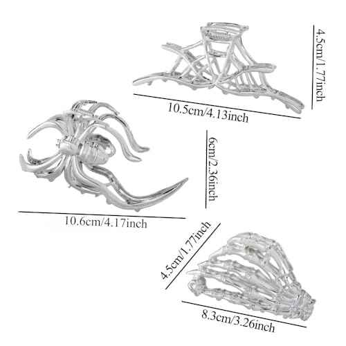 Hair Claw Clips for Women Girls, 3PCS Skeleton Hand Spider Web and Large Spider Punk Metal Alloy Hair Accessories Decorations for Thick Hair Styling Tools Gift(Silver Color)
