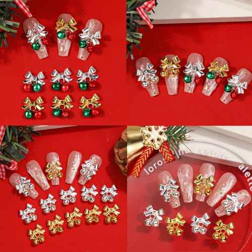 40Pcs Christmas Bell Nail Charms Gold Silver Bell Xmas Nail Charms for Acrylic Nails Red Green Alloy Bell Nail Gems and Charms Nail Jewelry for Women DIY Manicure Accessories