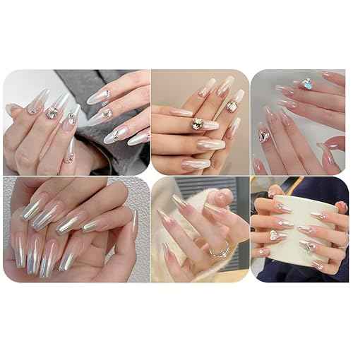 Artdone White Pearl Chrome Nail Powder,Iridescent Aurora Powder Metallic Mirror Effect Pigment Pearlescent Mermaid Pigment Pearl Glitter Dust Kit,Nail Art Decoration, Resin Craft