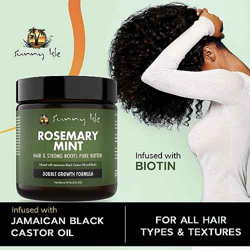 Sunny Isle Rosemary Mint Hair and Strong Roots Butter 4oz | Infused with Biotin & Jamaican Black Castor Oil | Strengthen and Nourish Hair | Dry Scalp, Split Ends