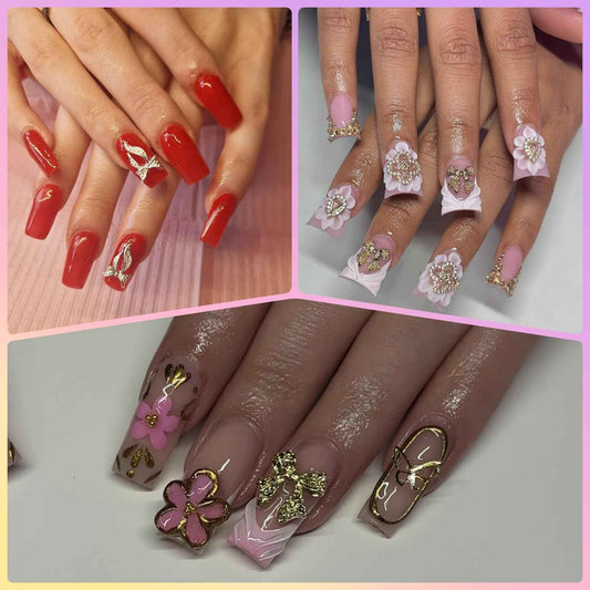 OPMADM 100Pcs Gold Nail Charms and Gems Charms for Nails Design Gold Charms for Nails Metal Bow Cherry Butterfly Cross Heart Star and Flowers