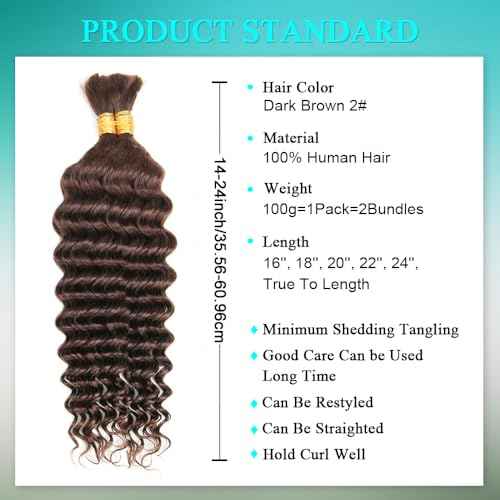 Human Braiding Hair for Boho Braids Human 110g 24 Inch Color 4 Deep Wave Boho Bulk Human Hair for Braiding 12A Deep Wave Bulk Bohemian 2 Bundles/Pack Chocolate Brown
