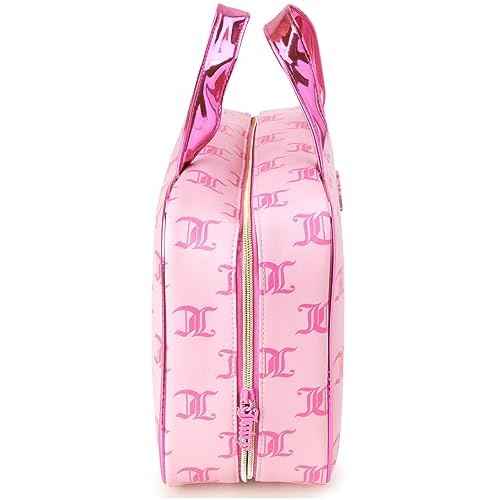 Juicy Couture Pink Makeup Bag Cosmetics Organizer Travel Essentials Weekender Logo Shiny Trim