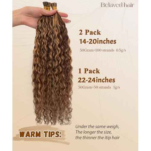 Curly I Tip Hair Extensions Human Hair 4P27 26 Inch Water Wave Cold Fusion Itip Flawless Microlinks Hair Extensions Invisible Blends Naturally Individual Strands for Black Women 50G Brown to Blonde