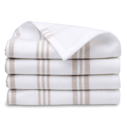 Sticky Toffee Cotton Washcloths Set of 4 – 13x13 in Tan Modern Stripe Terry Towels, Soft and Absorbent Reusable Fingertip Towels, Quick Drying