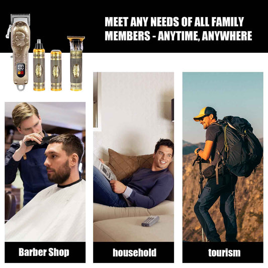 Professional Hair Clipper Set Men's Cordless Hair Clipper T-Shaped Blade Beard Trimmer Nose Hair Trimmer Electric Shaver Rechargeable Professional Hair Trimmer Set (Bronze)
