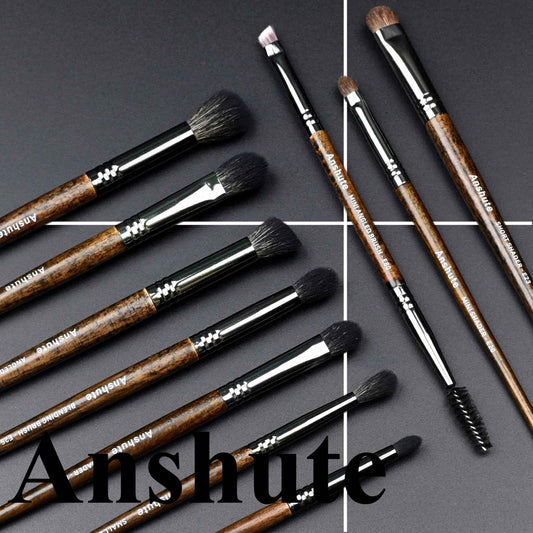 Anshute Natural Goat Hair Makeup Brushes Set of 10, Professional Natural Hair Cosmetic Brushes with Case, Beech Wood Handle. Super Soft Bristles, Variety of Brushes. Face Brushes, Eyeshadow Brushes.