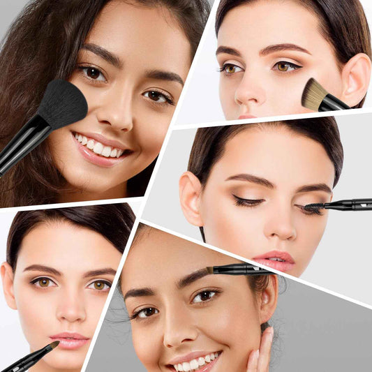 2 Pack 4 in 1 Makeup Brush, Travel Makeup Brush Set with Case, Foundation Brush, Concealer Brush, Eyeshadow Brush Set, Screw Brush, Lip Brush for Foundation, Concealer, Powder Liquid