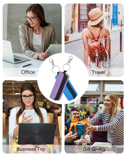 Meiiy Chapstick Holder Lip Balm Sleeve Pouch Lipstick Holder Bag Lip Gloss Holder With Hook Stocking Stuffers Gift for Women (Blue,purple)