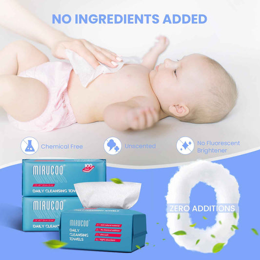 Mirucoo 100 Sheet Daily Cleansing Towels Ultra Soft Dry Wipes for Sensitive Skin Disposable Facial Washcloths 100% Organic Viscose (Pack of 6)