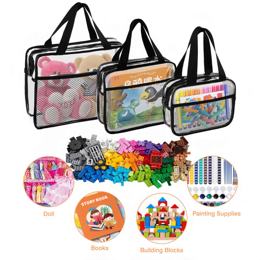XEWEA Large Small Clear Travel Toiletry Bags with Handles & Pocket for Men Women, 3PCS TSA Approved Transparent Makeup Bag,Waterproof PVC Quart Organizer with Zipper for Toiletries Airline Essentials