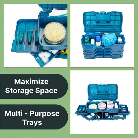 Best Kept | Bathroom Storage Case | Portable Travel Toiletry Case | Shower Lidded Caddy | Travel Toiletry Train Case | Navy Blue