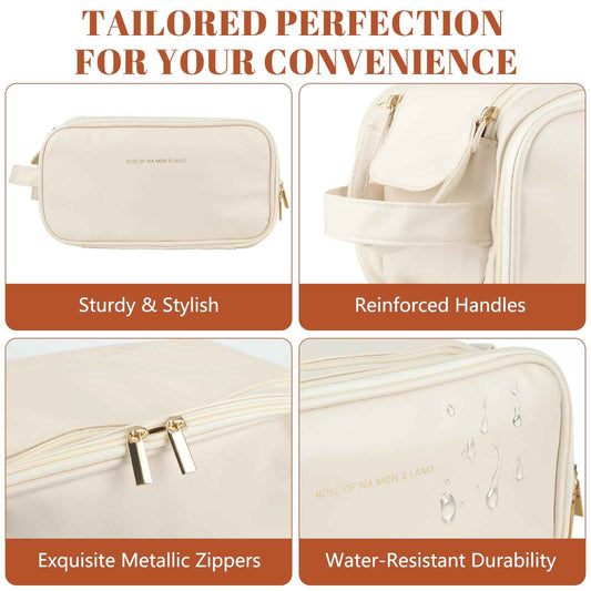 KEYPOWER Travel Makeup Bag Toiletry Bag Large Capacity Cosmetic Portable Waterproof Large Opening Vertical Free-Standing & Small Clutch for Women (White)