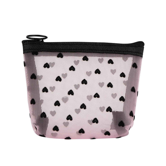 Adorila 6 Pack Mini Mesh Makeup Bags, Heart Print Zipper Mesh Storage Pouch, Travel Cosmetic Accessories Organizer for Women (Black, Beige, Pink)