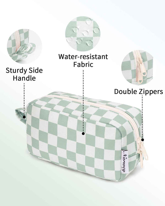 Narwey Small Checkered Makeup Bag for Purse, Gift for Teen Girls, Travel Makeup Pouch Mini Cosmetic Bag Cute Make up Bags Zipper Pouch for Women and Girls (Mint Green Checkerboard, Small)