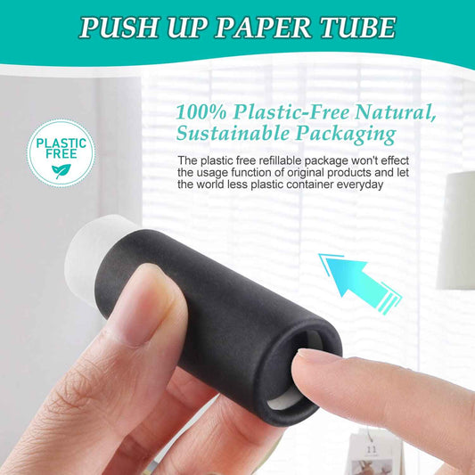 15 Pcs 0.3 oz Paperboard Lip Balm Tubes,Empty Kraft Paper Chapstick Tube Holder,Push-Up Style Biodegradable Solid Perfume Lip Gloss Container for DIY Homemade Balm Container,Natural Packaging- Black