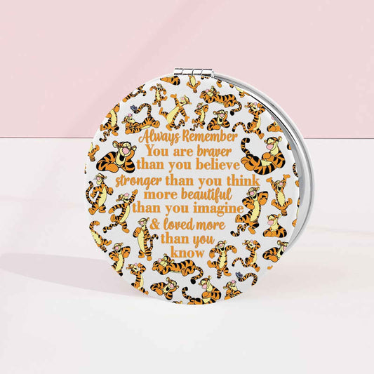 KEYCHIN Tiger Pocket Mirror Cartoon Movie Fans Gifts You are Braver Stronger Smarter Than You Think Compact Makeup Mirror (Tiger-White)