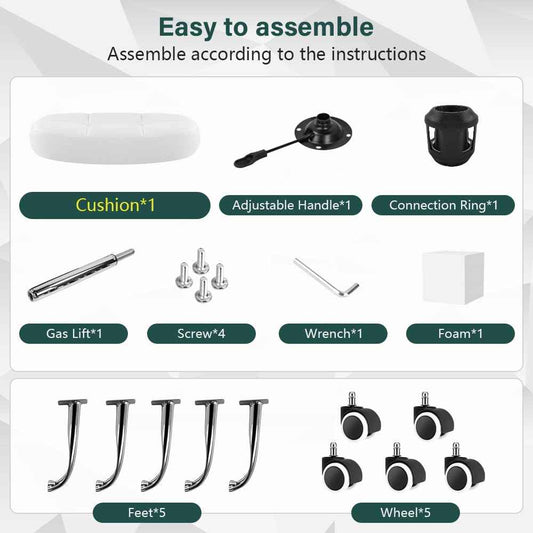 BFTOU White 6-Square Lattice PU Swivel Stool with Wheel for Work SPA Shop Massage Height-Adjustable and Cost-Effective Rolling Stool Chair
