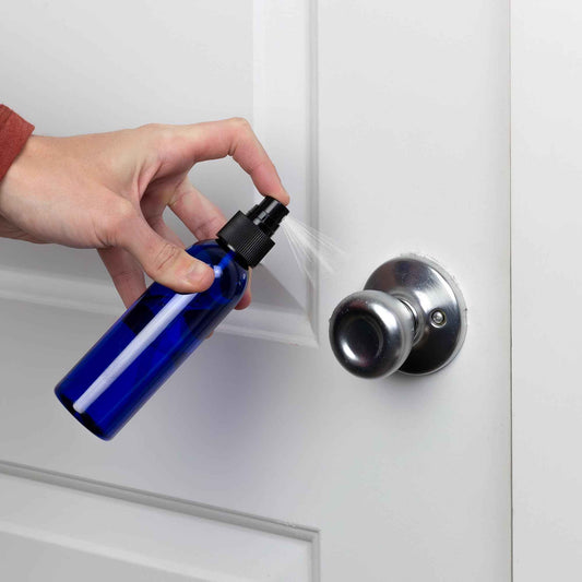 Cornucopia Brands Empty Plastic Refillable PET Spray Bottles w/Fine Mist Atomizer Caps (Pack of 6) Sprayers for DIY Home Cleaning, Aromatherapy, Travel, & Beauty Care (4 Ounce, Cobalt Blue, 6)