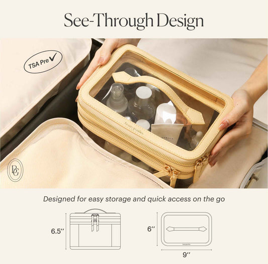 Clear Travel Makeup Bag for Women Organizer with Handle Beige, Extra Large Transparent Makeup Bag Toiletry Organizer with Zipper, Clear Cosmetic Travel Bags for Women Skincare Organizer for Traveling