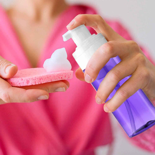 3-Pack Travel-Sized Foaming Pump Bottles - Empty Foaming Liquid Soap Dispensers - for Refillable Travel Hand Soap Shampoo Foaming Castile Cosmetics - BPA Free (100ml/3.3oz) (Purple)