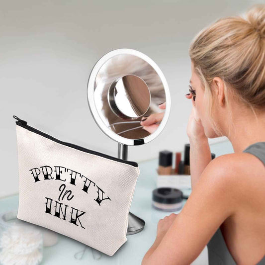 WCGXKO Tattoo Lover Gift Tattoo Artists Gift Pretty in Ink Addicted to Ink Zipper Pouch Makeup Bag (Pretty in Ink)