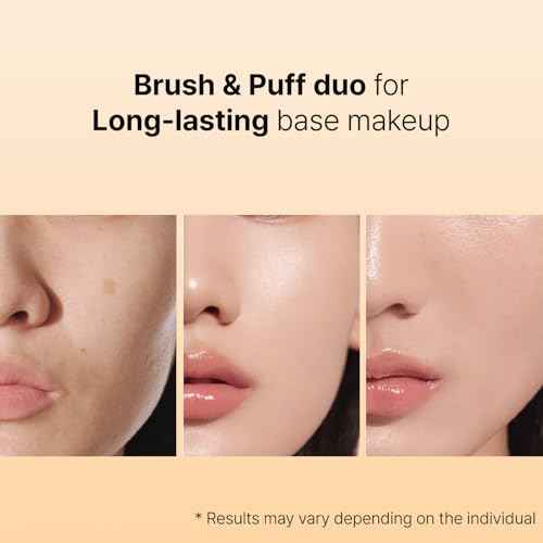 THE TOOL LAB All Day Fitting Duo (Glow type) - Premium Base Makeup Set for Liquid Cream Powder Foundation, Buffing Blending Face Brush, Sponge, Portable Case - 1.1" Flat Top Brush