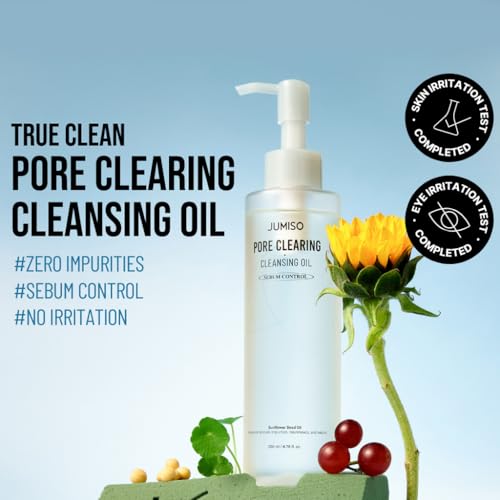 JUMISO Pore Clearing Cleansing Oil - Korean Face Makeup Remover Waterproof Makeup Deep Cleansing Blackhead Removal No Residue Gentle Eye Irritation Free for All Skin Types, 6.76 fl.oz.